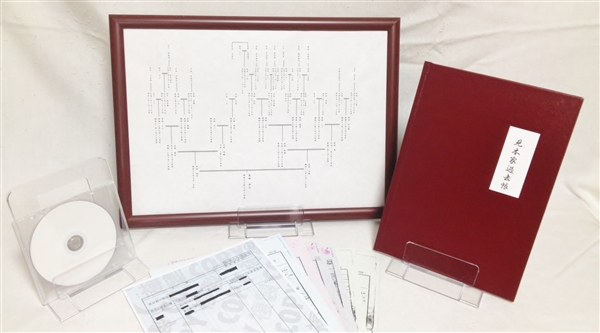 基本納品内容〜額入り家系図〜基本的な納品は、作成した家系図をA3サイズの額に入れた状態での納品となります。印刷に使用する用紙は、通常のコピー用紙を使用しておりません。当方では、専用の和紙に作成した家系図を印刷し納品させていただいております。和紙独特の質感が、より高級感のある仕上がりを演出してくれます...家系図データをCD-Rに格納したもの